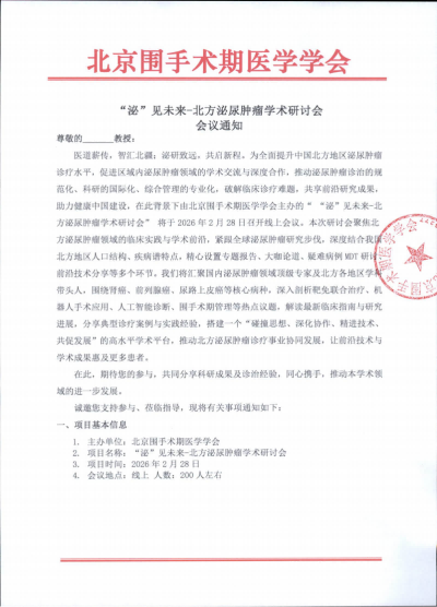 “泌”见未来-北方泌尿肿瘤学术研讨会通知